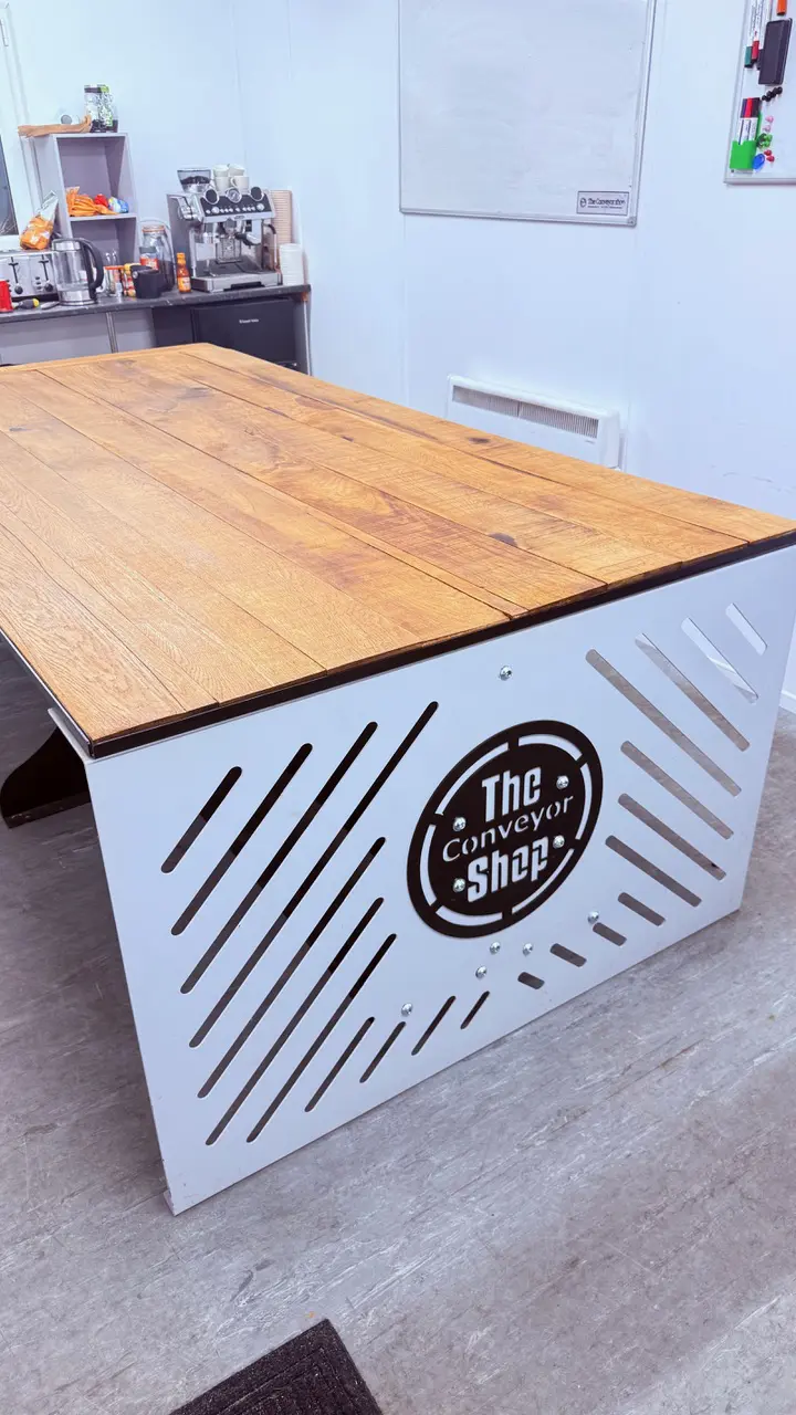 Chris Mccarthy from The Conveyor Shop has used our sturdy Oak Gravel Boards to create this meeting room tabletop, showcasing both durability and natural character of the hardwood.